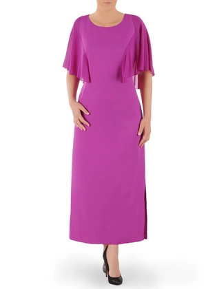 Sukienka wyszczuplająca, dwuwarstwowa szyfonowa kreacja na lato w kolorze fuksji 38349