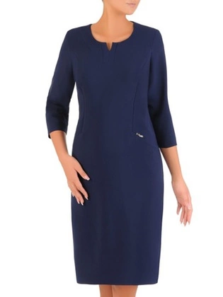 Granatowa sukienka z modnym dekoltem, nowoczesna kreacja wizytowa 27216