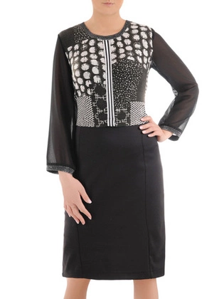 Prosta sukienka z dzianiny z ozdobną górą 35535