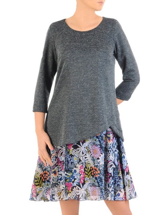 Wyszczuplająca sukienka na jesień, kreacja z łączonych materiałów 34236