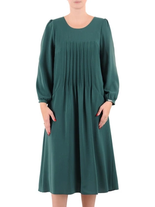 Luźna sukienka z kontrafałdą, oryginalna kreacja z półgolfem 34568