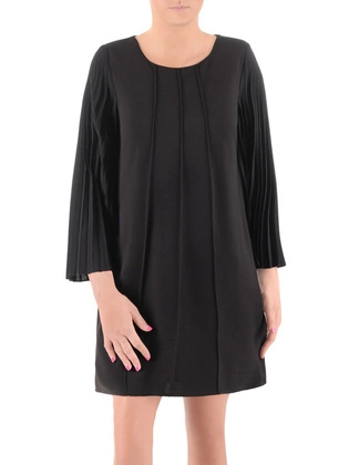 Rozkloszowana sukienka z tkaniny, kreacja z ozdobnymi plisami 35301