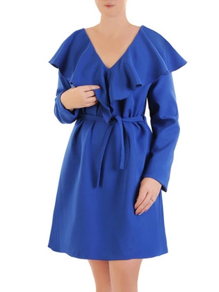 Elegancka chabrowa sukienka z ozdobnymi falbanami 34334