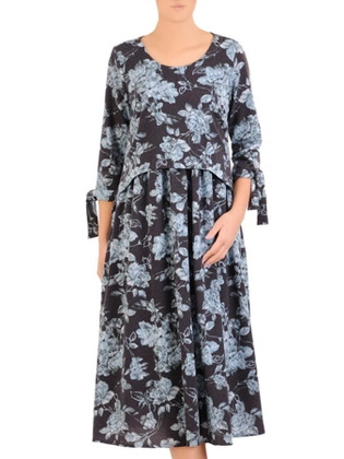 Rozkloszowana, podkreślająca biust sukienka w kwiaty 34472