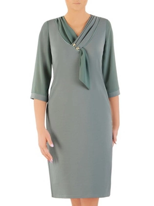 Jesienna sukienka wyszczuplająca z ozdobną kontrafałdą 30722