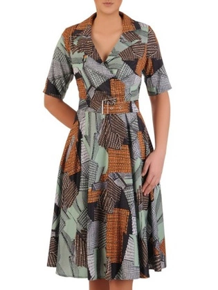 Sukienka z paskiem, wiosenna kreacja w modnym wzorze 25029