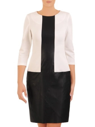Nowoczesna sukienka z kontrastowym, asymetrycznym kołnierzem 21978