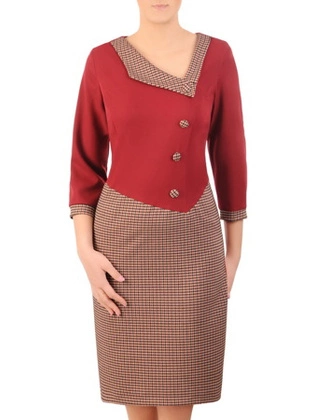 Sukienka damska 17566, jesienna kreacja z ozdobnym dekoltem.