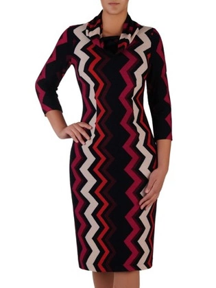 Sukienka z kominem Krystyna X, jesienna kreacja w geometrycznym wzorze