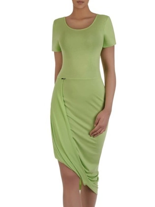 Pistacjowa sukienka z fantazyjnym marszczeniem 15976.
