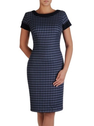 Nowoczesna sukienka w pepitkę 17145, kreacja z modnym półgolfem.