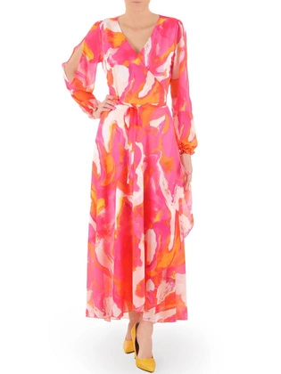 Elegancka sukienka maxi, kreacja z ozdobnymi rozcięciami na rękawach 36169