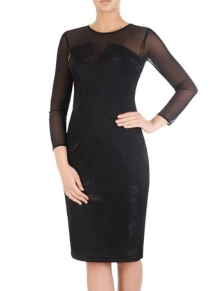 Nowoczesna mała czarna z tiulowymi rękawami 14158.