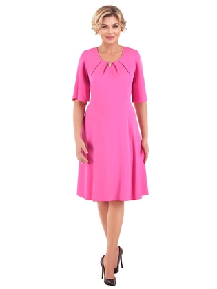 Sukienka damska midi z dzianiny – wygodna beżowa sukienka z rękawem 3/4 40068