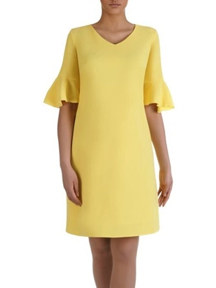 Trapezowa sukienka z ozdobnymi falbanami przy dekolcie 35975