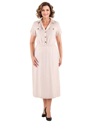 Prosta sukienka z tkaniny, kreacja z ozdobnym, białym kołnierzem 31961