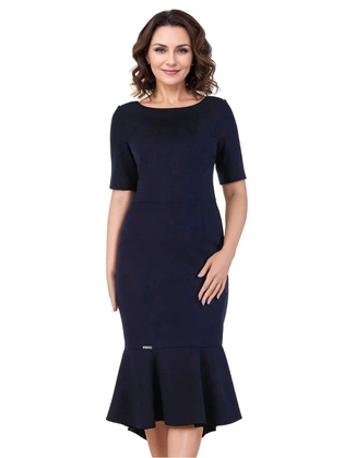 Elegancka sukienka z modną falbaną 20229, kreacja w kolorze granatowym.
