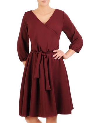 Bordowa, rozkloszowana sukienka z kopertowym dekoltem 30919