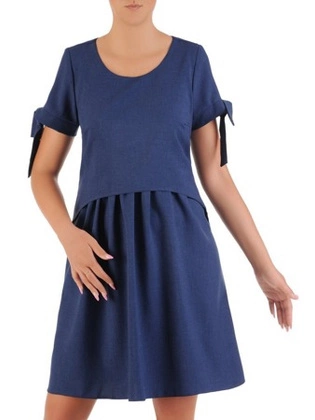 Sukienka z lnu, granatowa kreacja w luźnym fasonie 26431
