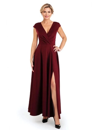Sukienka z fantazyjnym dekoltem Flawien, amarantowa kreacja na wesele