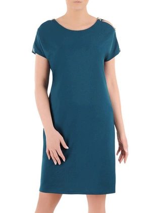 Sukienka z metalowymi zdobieniami, morska kreacja z dzianiny 35276
