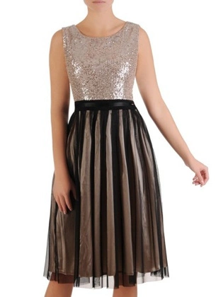 Rozkloszowana sukienka wieczorowa, kreacja zdobiona cekinami i tiulem 22719