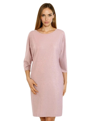 Pudrowa sukienka z szyfonu, kreacja z ozdobnym plisowaniem 30030