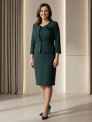 Wyszczuplająca sukienka na wesele dla 50-latki – modna kreacja z wiązaniem i rękawem 3/4 40501
