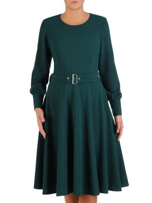 Rozkloszowana sukienka z dzianiny, zielona kreacja z paskiem 23352