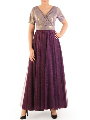 Wieczorowa sukienka damska z połyskującą górą i tiulowym dołem 35053