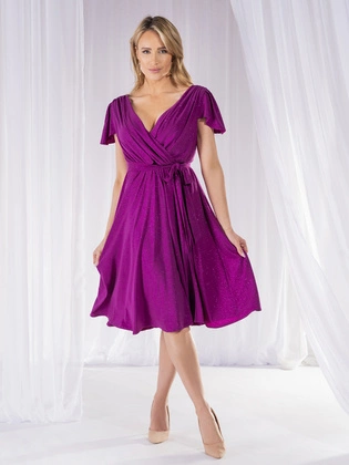 Sukienka na wesele, elegancka, rozkloszowana kreacja kopertowa z połyskiem 38202