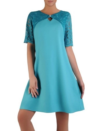 Turkusowa sukienka z koronkowym wykończeniem 17072.