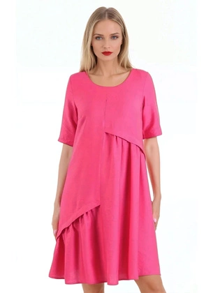 Luźna sukienka z lnu, zwiewna kreacja w modnym kolorze 33727