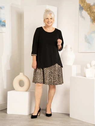 Elegancka sukienka z modnym zwierzęcym wzorem i dodatkiem ekologicznej skóry 27892