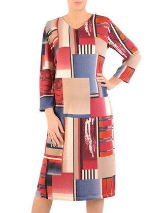 Sukienka wyszczuplająca, wiosenna kreacja z łączonych tkanin 19621.