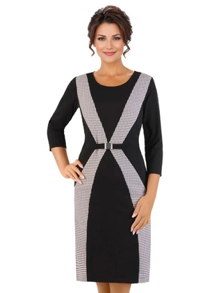 Nowoczesna sukienka z wzorzystymi wstawkami w kratkę 34672