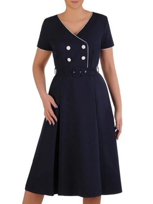 Granatowa sukienka z efektownie wykończonym dekoltem 20505