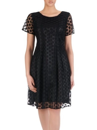 Sukienka wyszczuplająca Astrida I, wiosenna kreacja z kontrastowym nadrukiem