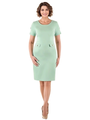Miętowa sukienka ołówkowa midi z ozdobnymi patkami – elegancka sukienka wizytowa z rozcięciami na rękawach 40156