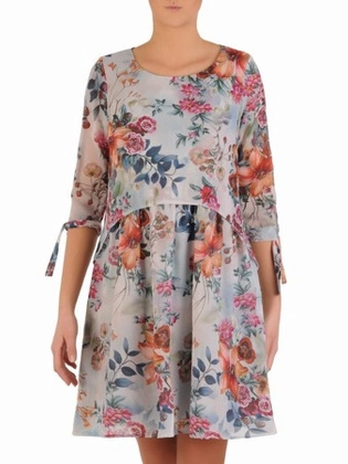 Sukienka damska w kwiaty, wizytowa kreacja w luźnym fasonie 28178