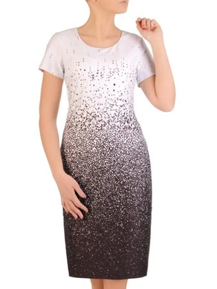Prosta sukienka z dzianiny, kreacja z szyfonowymi wstawkami 31718