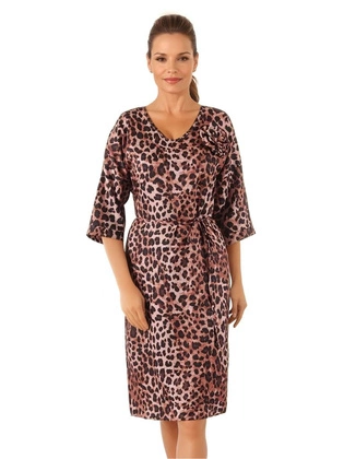 Elegancka sukienka wyszczuplająca z paskiem i gumkami na rękawach 38690