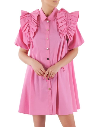 Luźna sukienka z szyfonu, kreacja z ozdobnymi guzikami i wiązaniami 30332