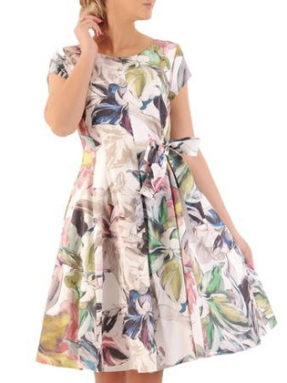 Elegancka sukienka w kwiaty z ozdobnie wyciętymi rękawami 30039