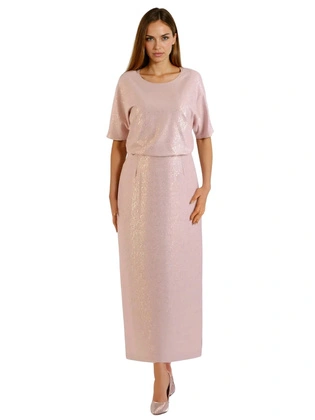 Srebrna, połyskująca sukienka maxi ze zbluzowaną górą 34542