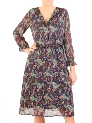 Szyfonowa sukienka z rozpinanym dekoltem i gumką w pasie 31073