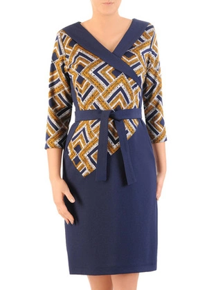 Elegancka sukienka damska, ołówkowa kreacja z tkaniny w wyszczuplającym wzorze 37867