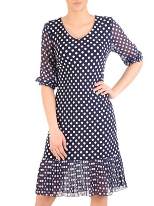 Elegancka sukienka w groszki, kreacja z szyfonową górą i ozdobnym paskiem 34557