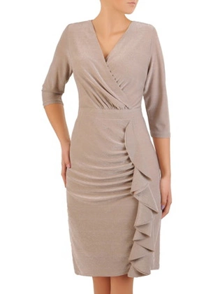 Wieczorowa, połyskująca sukienka z pionową falbaną 30976