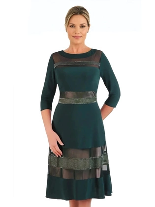 Szyfonowa sukienka damska morska midi – elegancka sukienka na wesele, z falbaną i ozdobą w pasie 39985